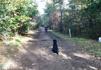 Running long lines (65-70m). I did this for two days with Toots, at that time he saw me throwing the bumpers. Now I throw the bumpers on the same place, but Toots was at home. So on memory (and the command back/vooruit) he ran three times the long line. Of course with support of the trees and bushes. Later in time I'll train this on rougher terrain and start increasing the distance. This is a crucial part when you are going to direct your dog over long distances. Of course lots to improve for myself, but the start is there. Toots is also changing bumpers, this also will be a point of training.